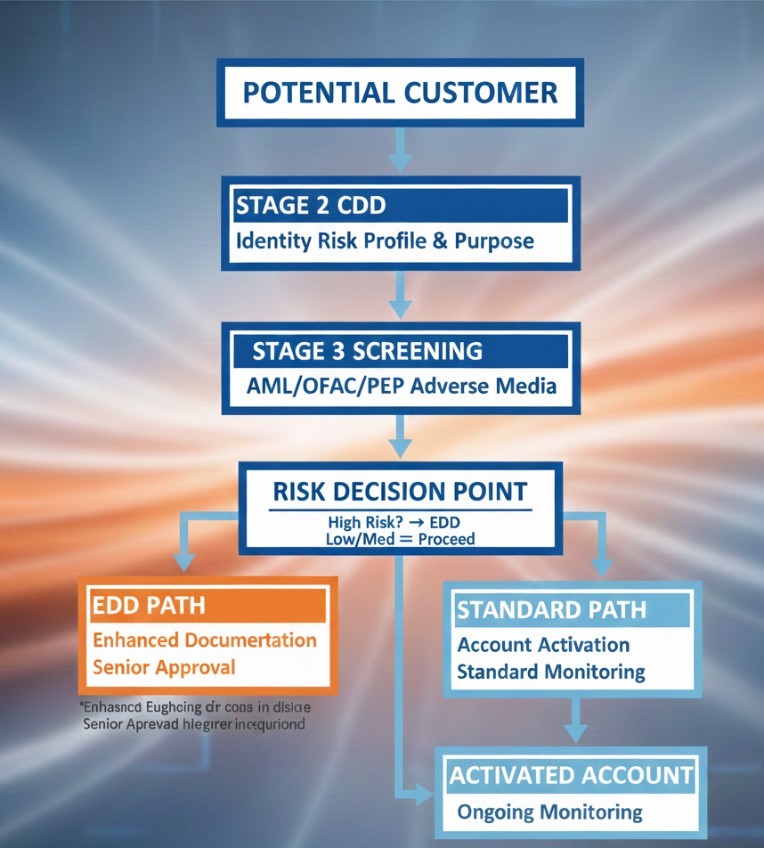 Optimal Sequence: CIP → CDD & Initial Screening → Risk Rating → (If High-Risk) EDD → Account Activation & Ongoing Monitoring.